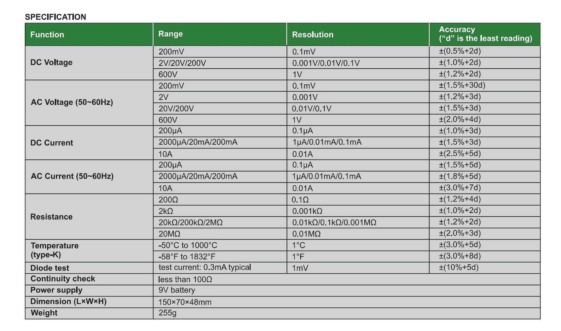 Insize Digital Multimeter with 2000 Counts Digital Display, 9216-F520