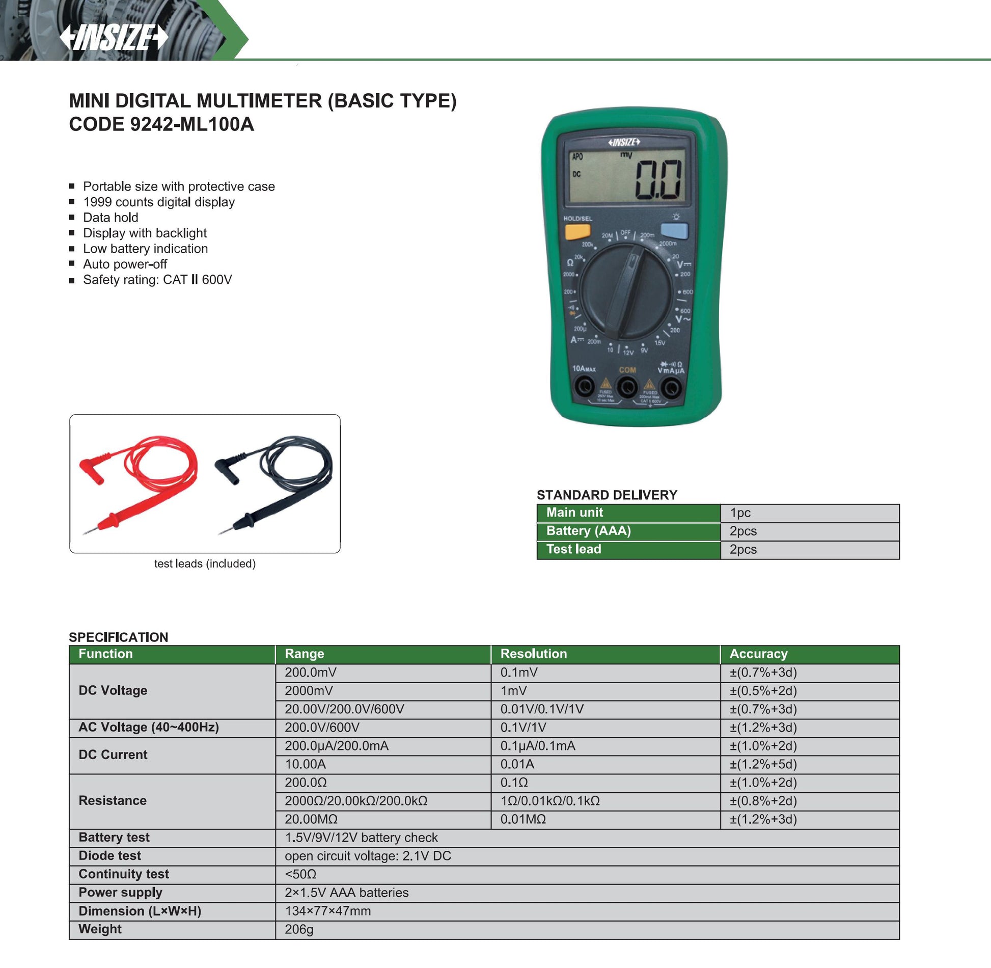 Insize Mini Digital Multimeter (Basic Type) 9242-ML100A